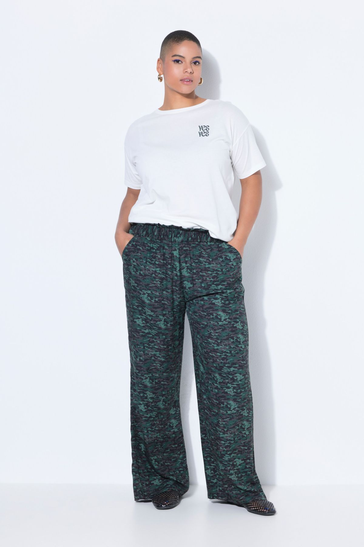 Taille haute, Viscose douce et confortable, motif camouflage, Taille élastique, Entrej. env. 80 cm.