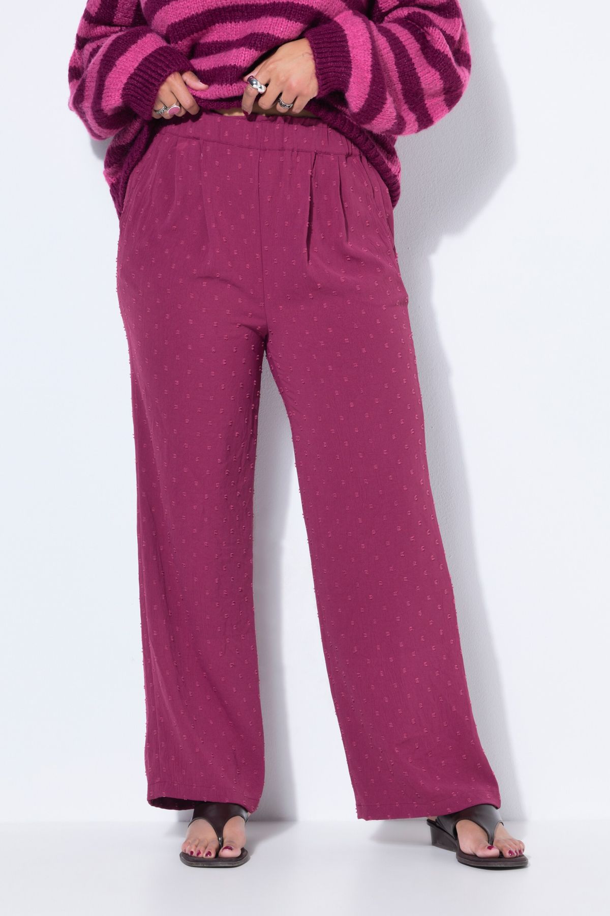 Coupe Wide Legs (jambe large), Taille haute, Pois texturés, Taille élastique, Entrej. env. 78 cm.