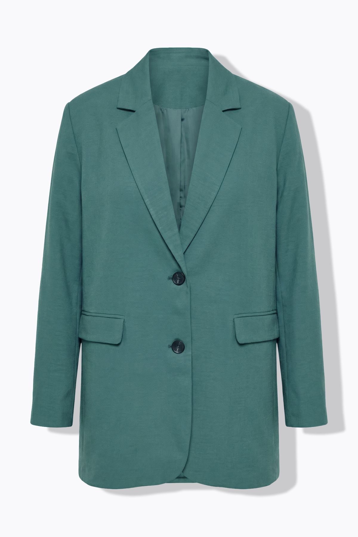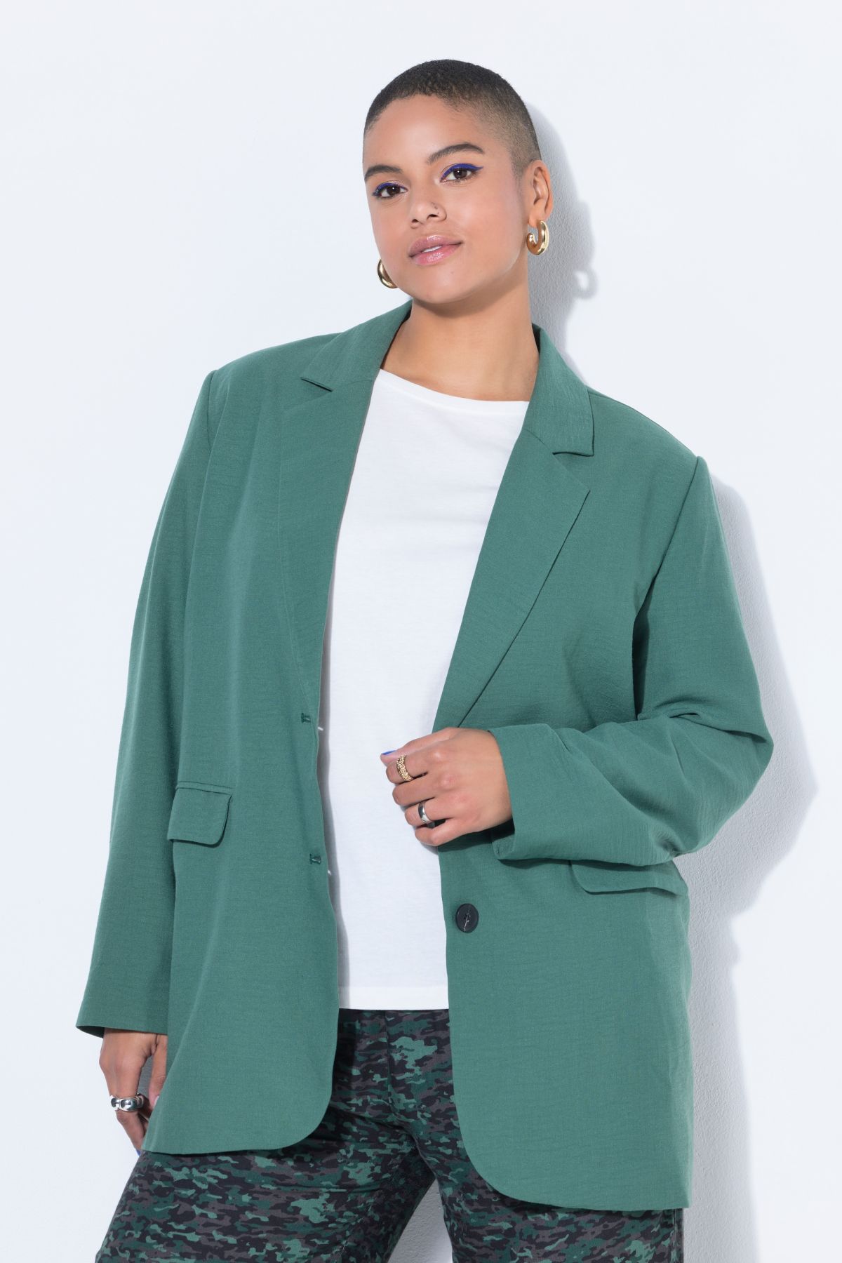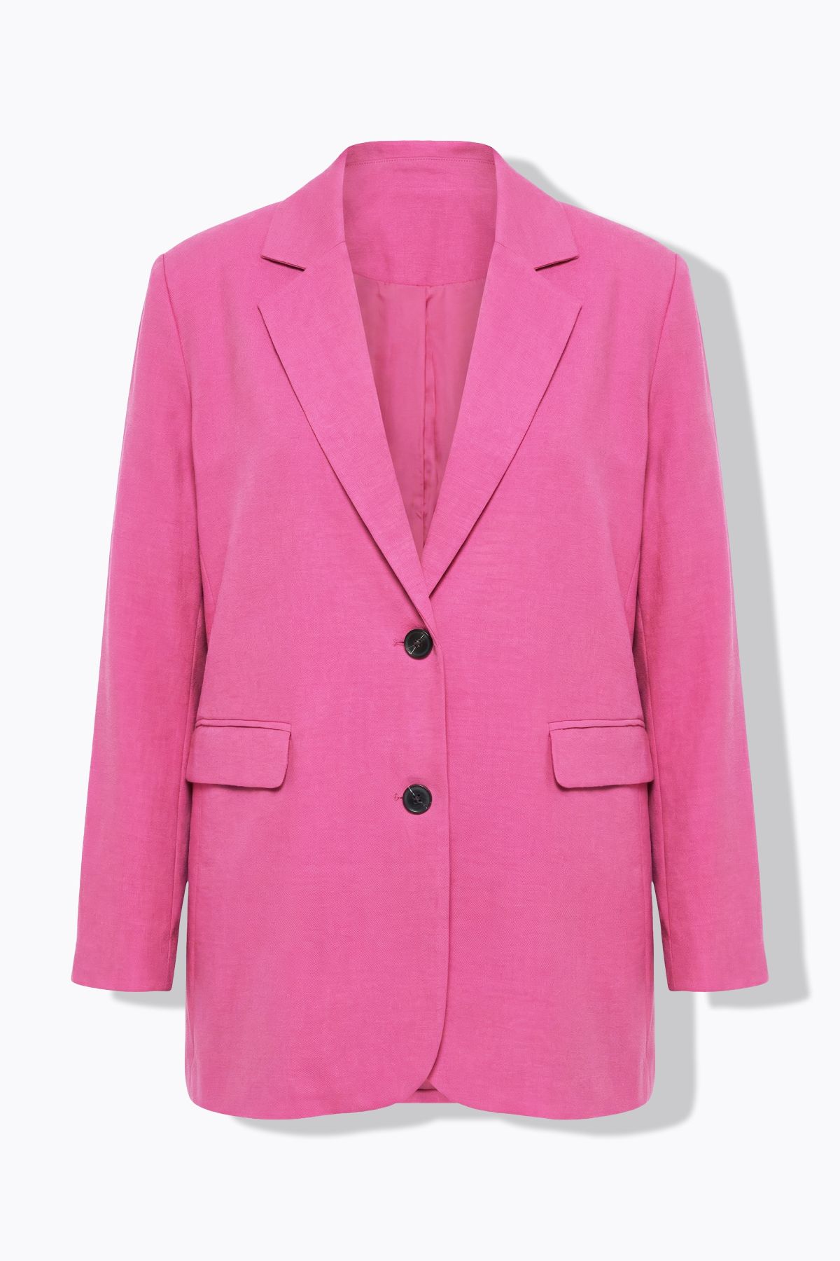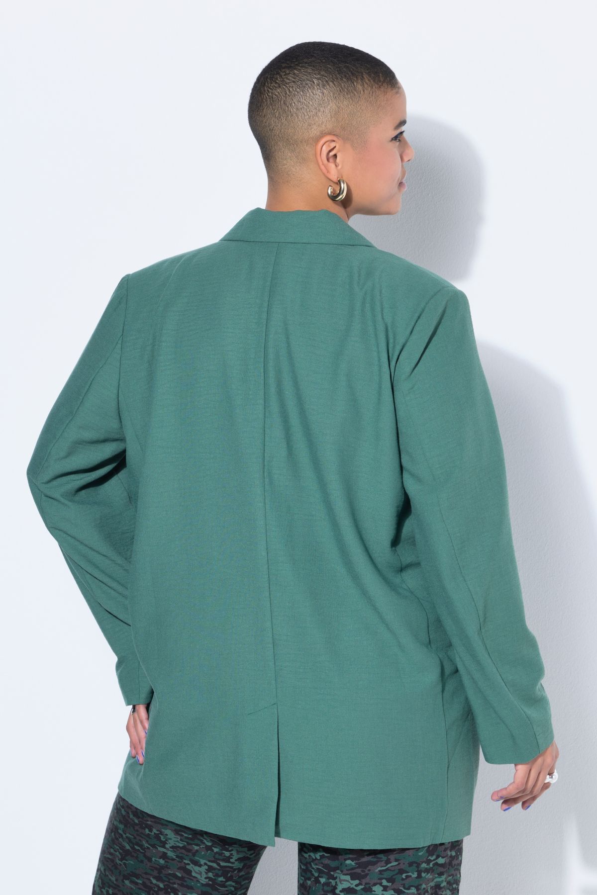 Coupe oversize, Matière agréable aspect lin, Col à revers, Fermeture boutonnée, Doublure intégrale, Long. selon taille env. 80-84 cm.