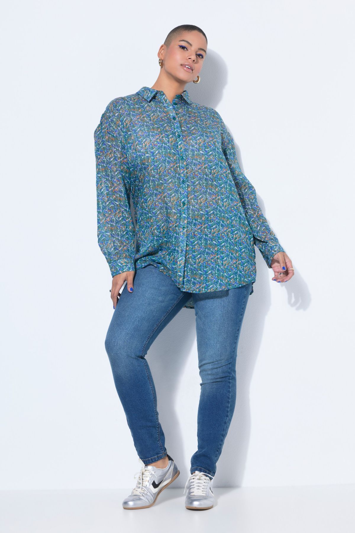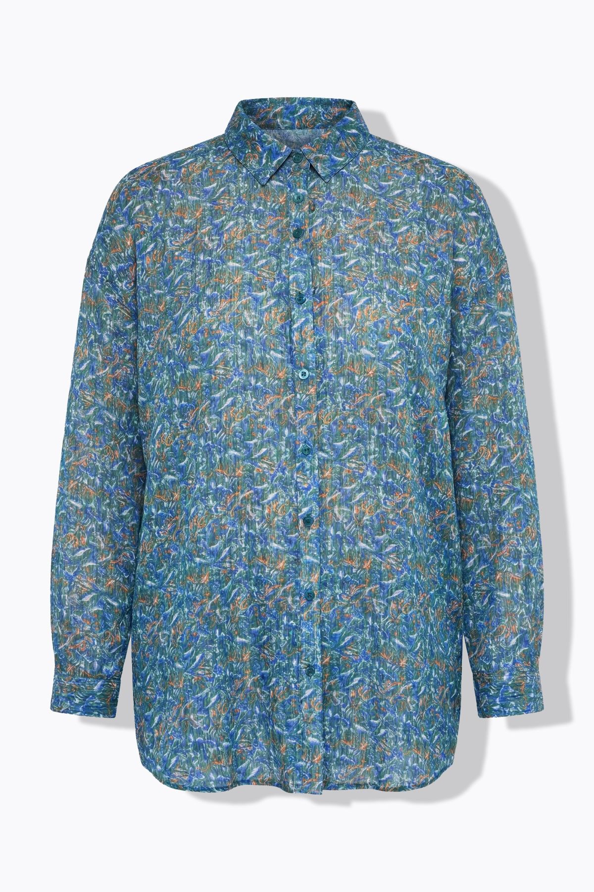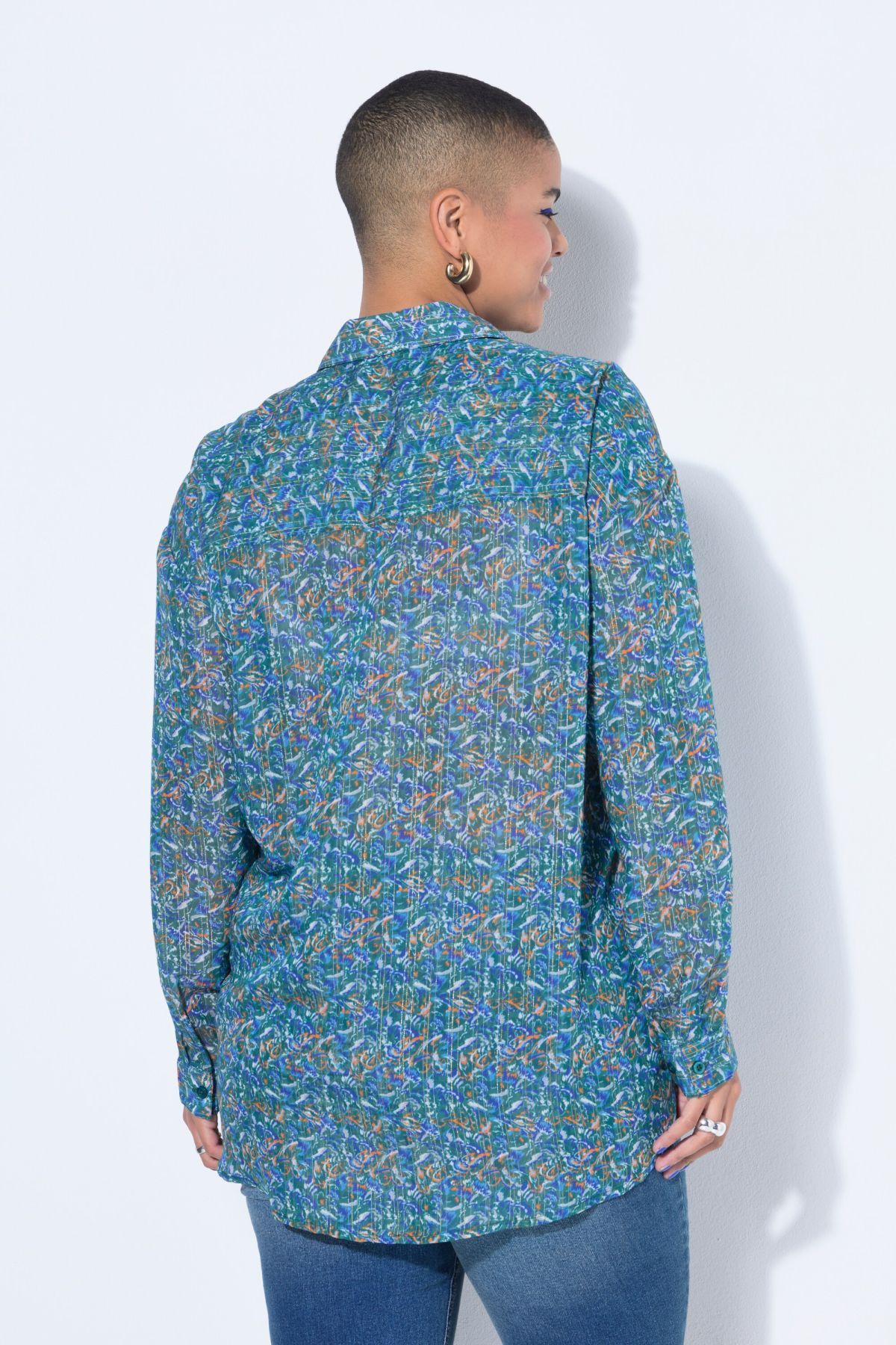 Coupe oversize, Motif et fil scintillant, Col chemise, Manches longues avec poignetq, Base arrondie avec fente sur les côtés, Long. selon taille env. 80-84 cm.