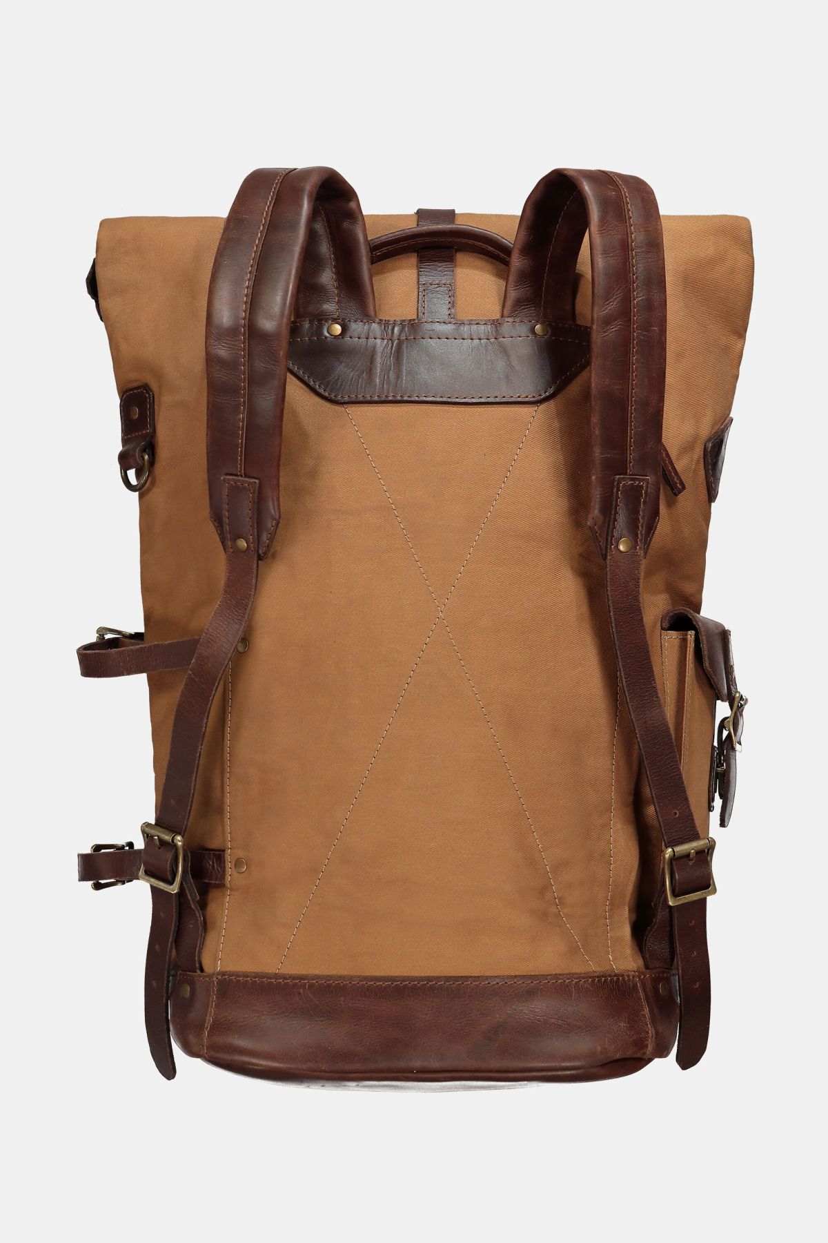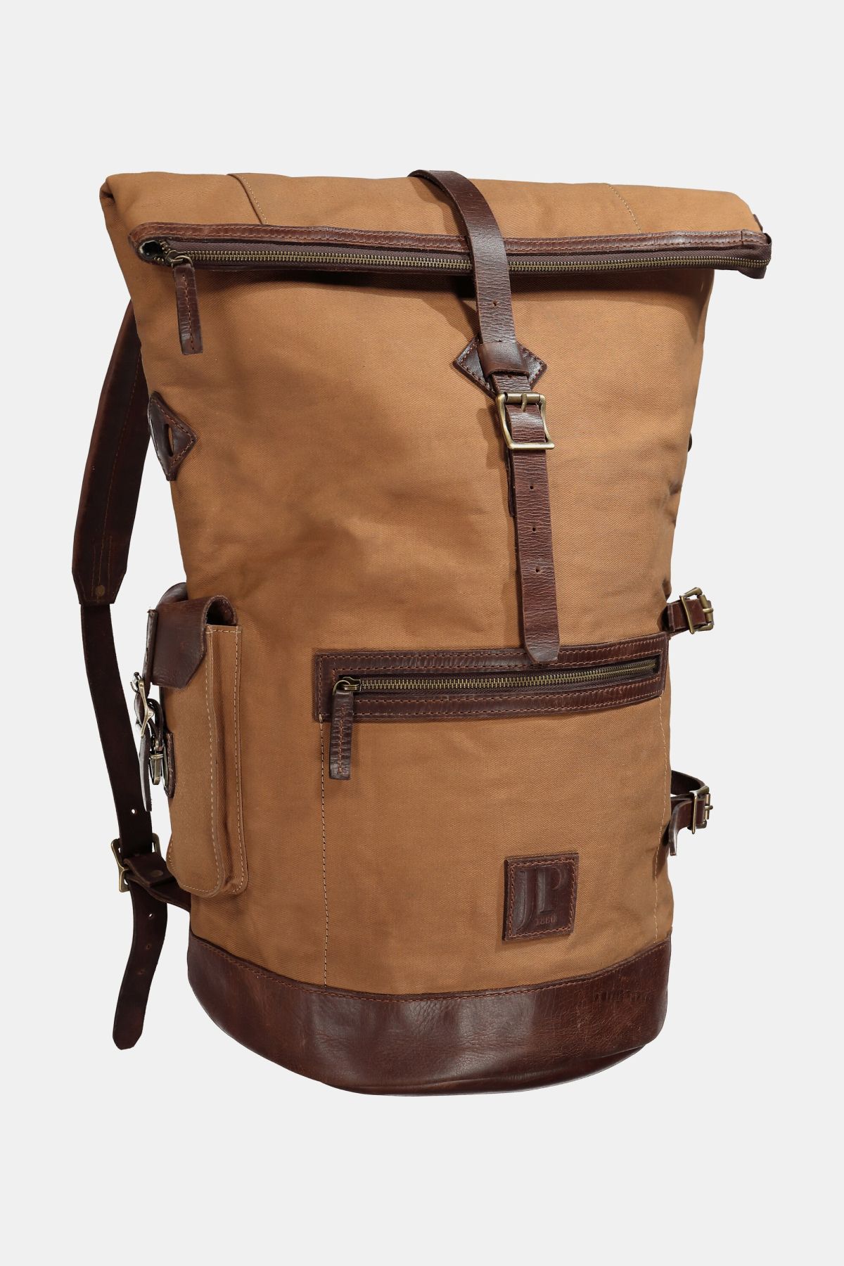 Esprit sac de marin, En toile cirée et cuir végétal, Modèle déperlant, Contenance : jusqu'à 60 litres, Dimensions en cm (HxLxl) : 45-65 x 34 x 27