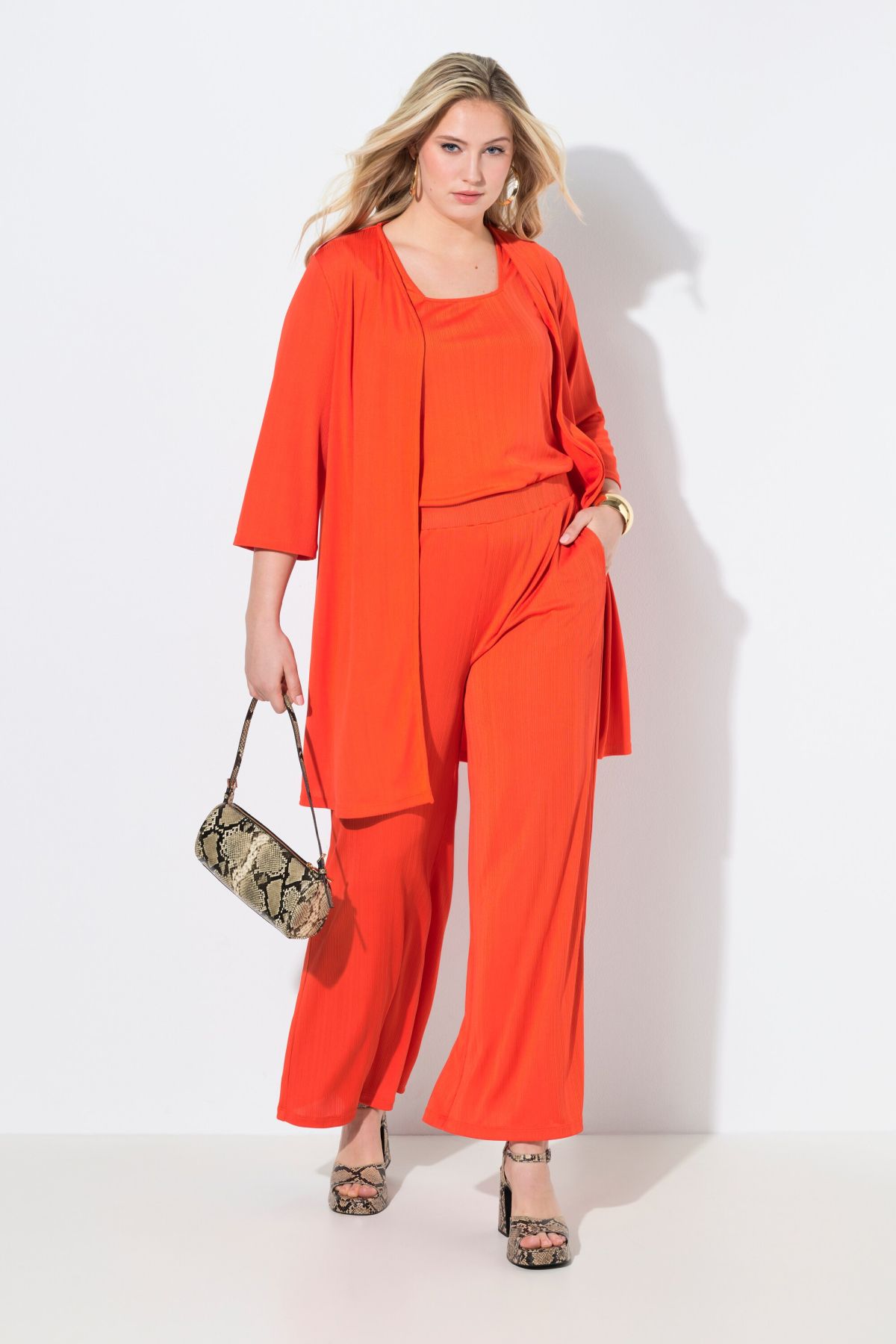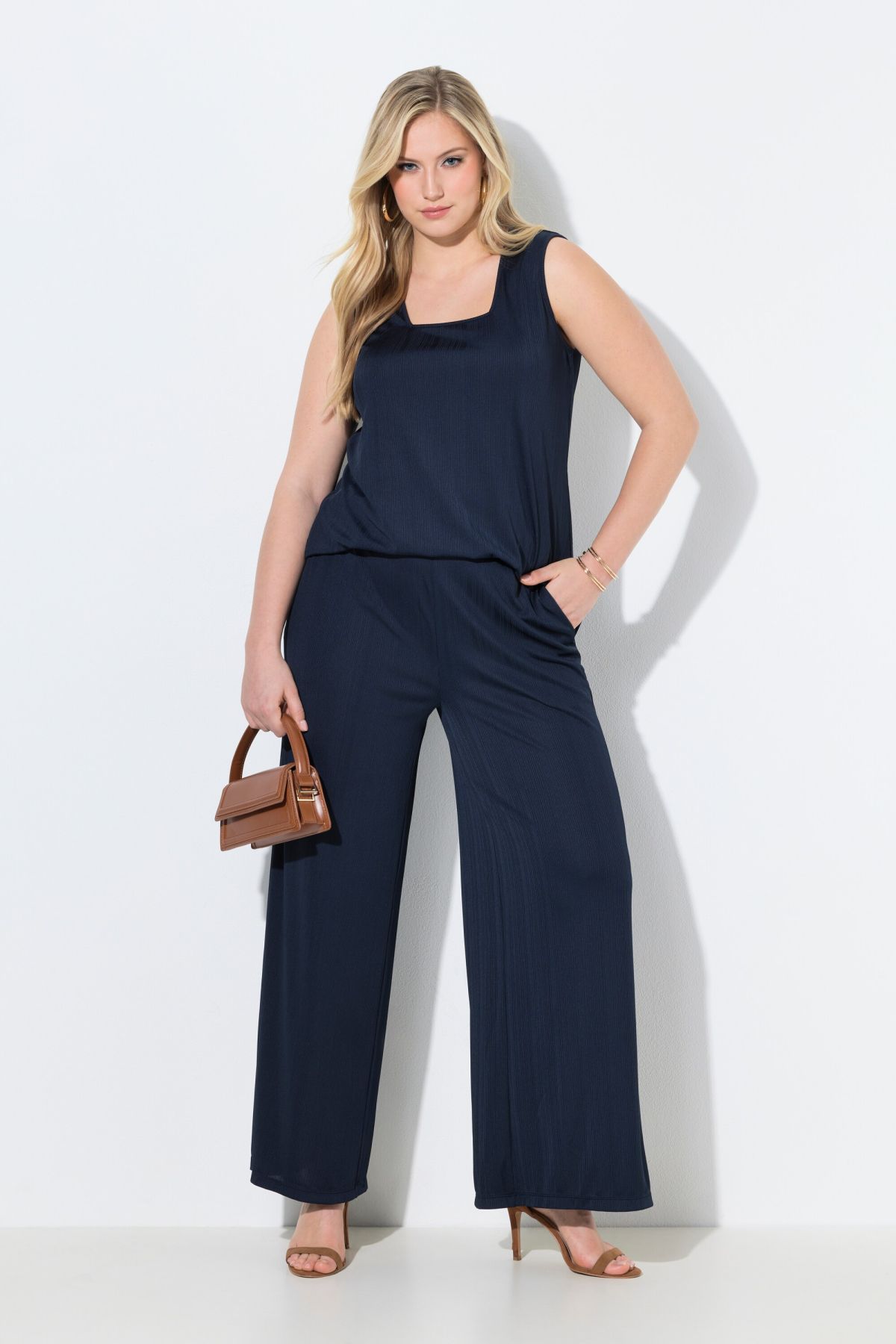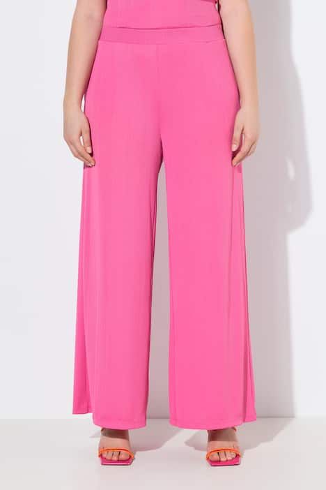 Pantalon Mary, coupe Marlene, jersey bord-côte, jambe large et taille élastique