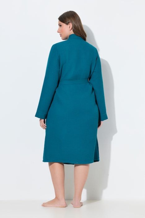 Peignoir, col châle, ceinture, tissu gaufré, manches longues