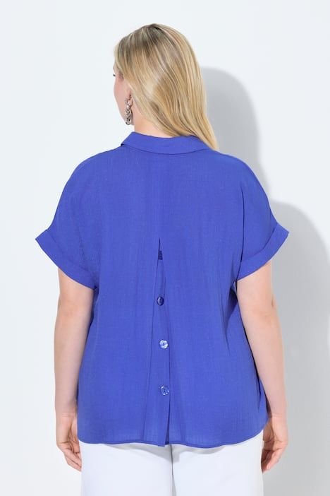 La chemise Oversized. Dos avec patte de boutonnage dans le pli creux. Col chemise ouvert, pli fantaisie. Épaules descendues, manches courtes à revers.& 10;<br>