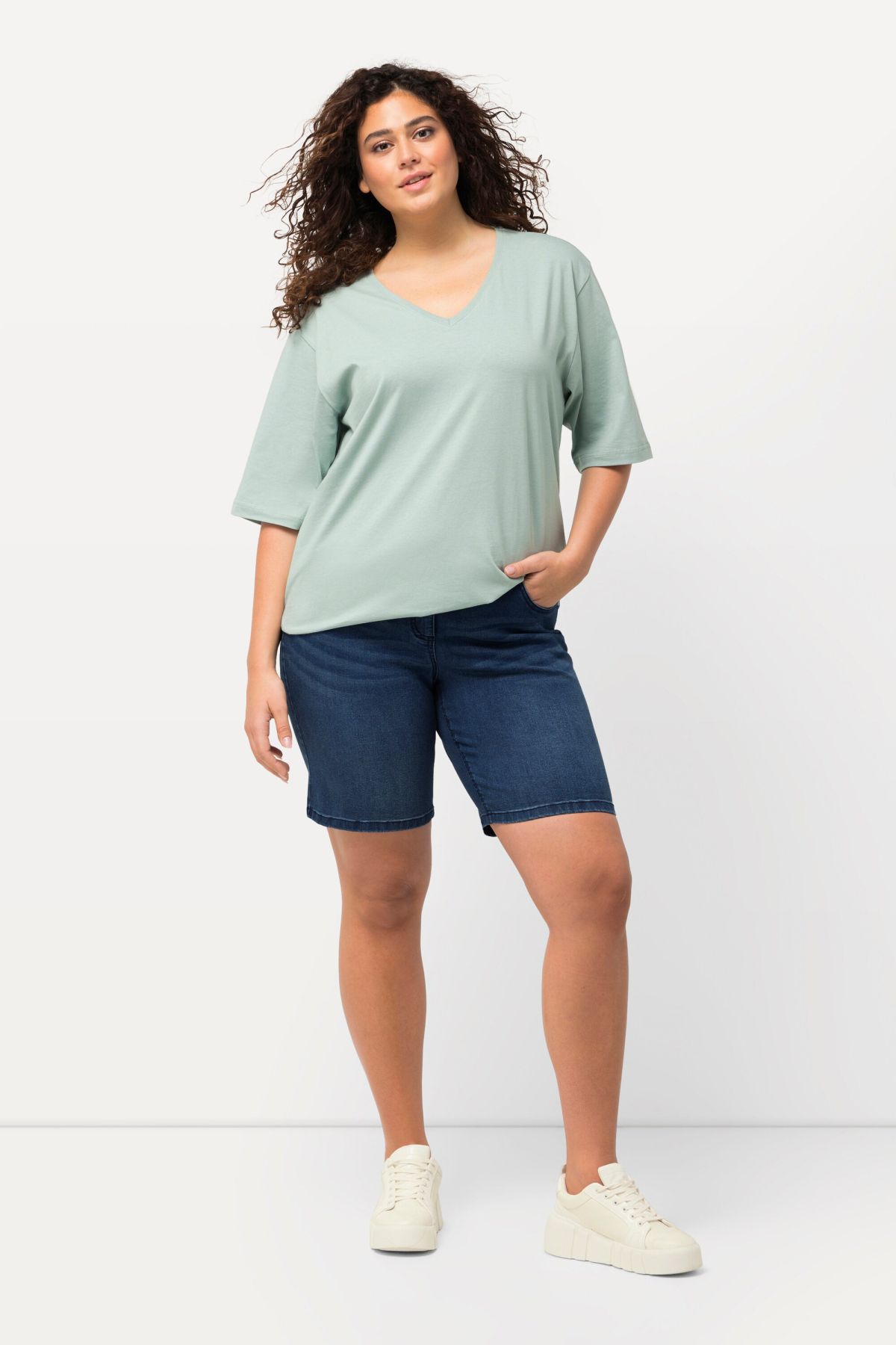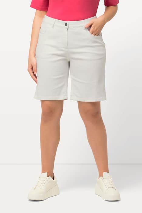 Longueur bermuda, idéale pour l'été, Modèle Mandy, jambe droite, 5 poches, Taille élastique avec bouton et fermeture éclair, Matière stretch confortable, Entrej. env. 24-28 cm.
