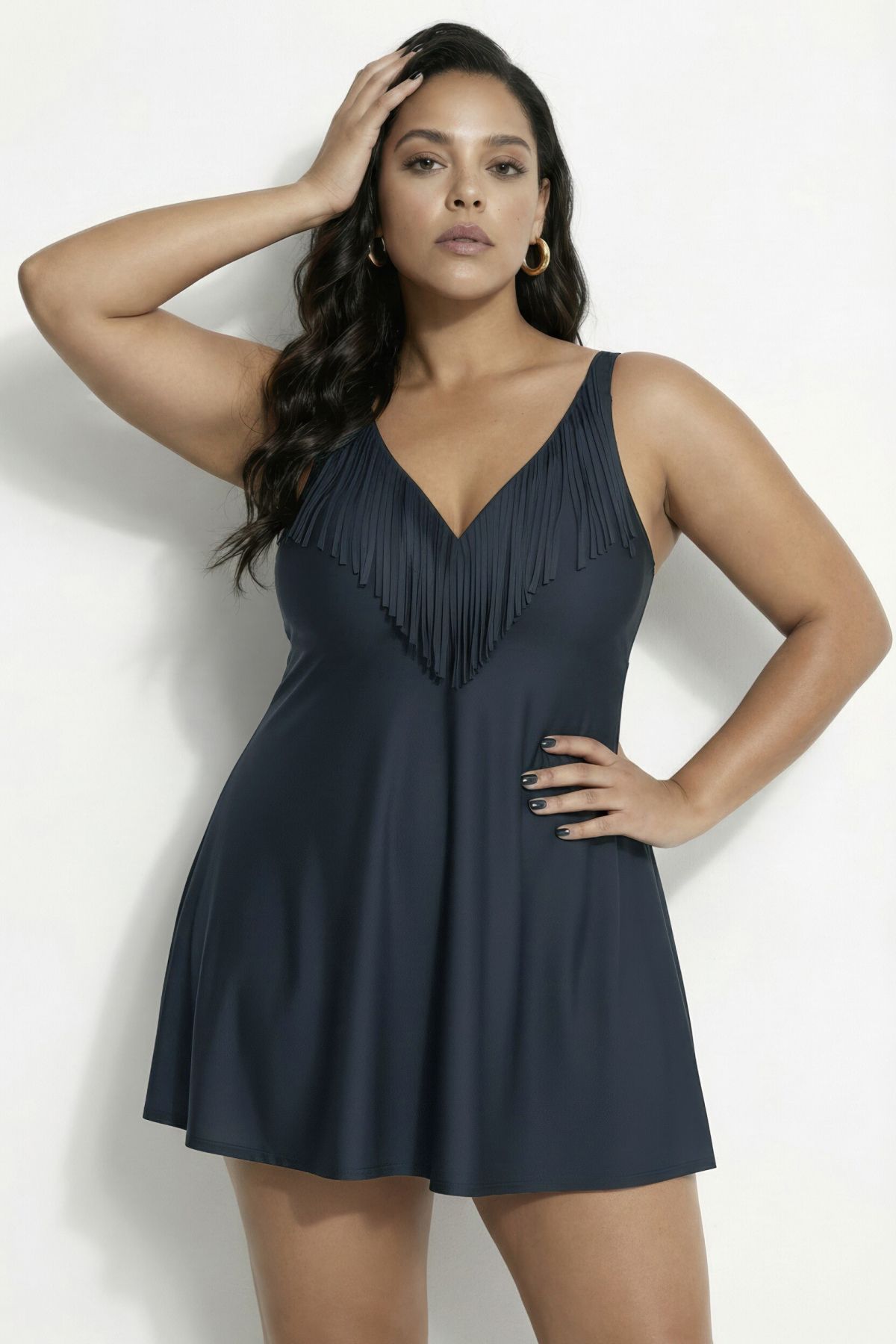 Décolleté en forme de cœur, à franges, Bonnets souples et armatures, Bande de soutien sous la poitrine, doublure poitrine, Maillot de bain intégré invisible, Contient du polyamide recyclé, plus respectueux de l'environnement