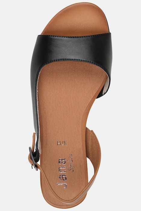 Simili 100 % végan, souple et confortable, Brides ajustables au niveau du talon, Semelle ergonomique amovible légèrement amortissante, Semelle extérieure en caoutchouc flexible, talon compensé, Largeur H