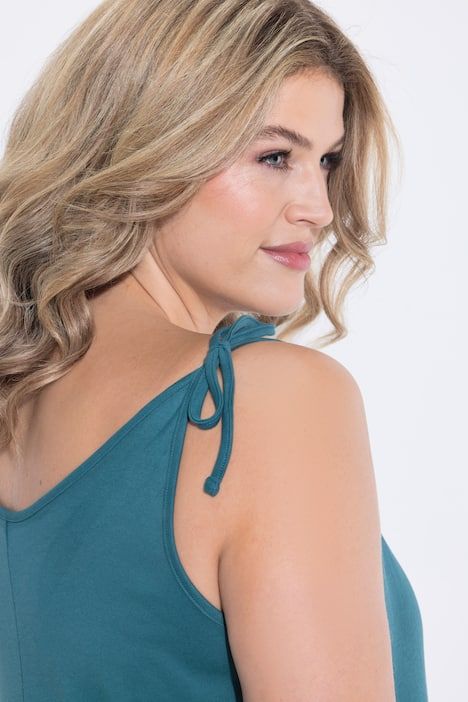 Jersey interlock doux de haute qualité, Coupe large à jambe droite, Bretelles à nouer, Couture décorative devant et derrière, Coton bio écologique, Entrej. env. 76 cm.