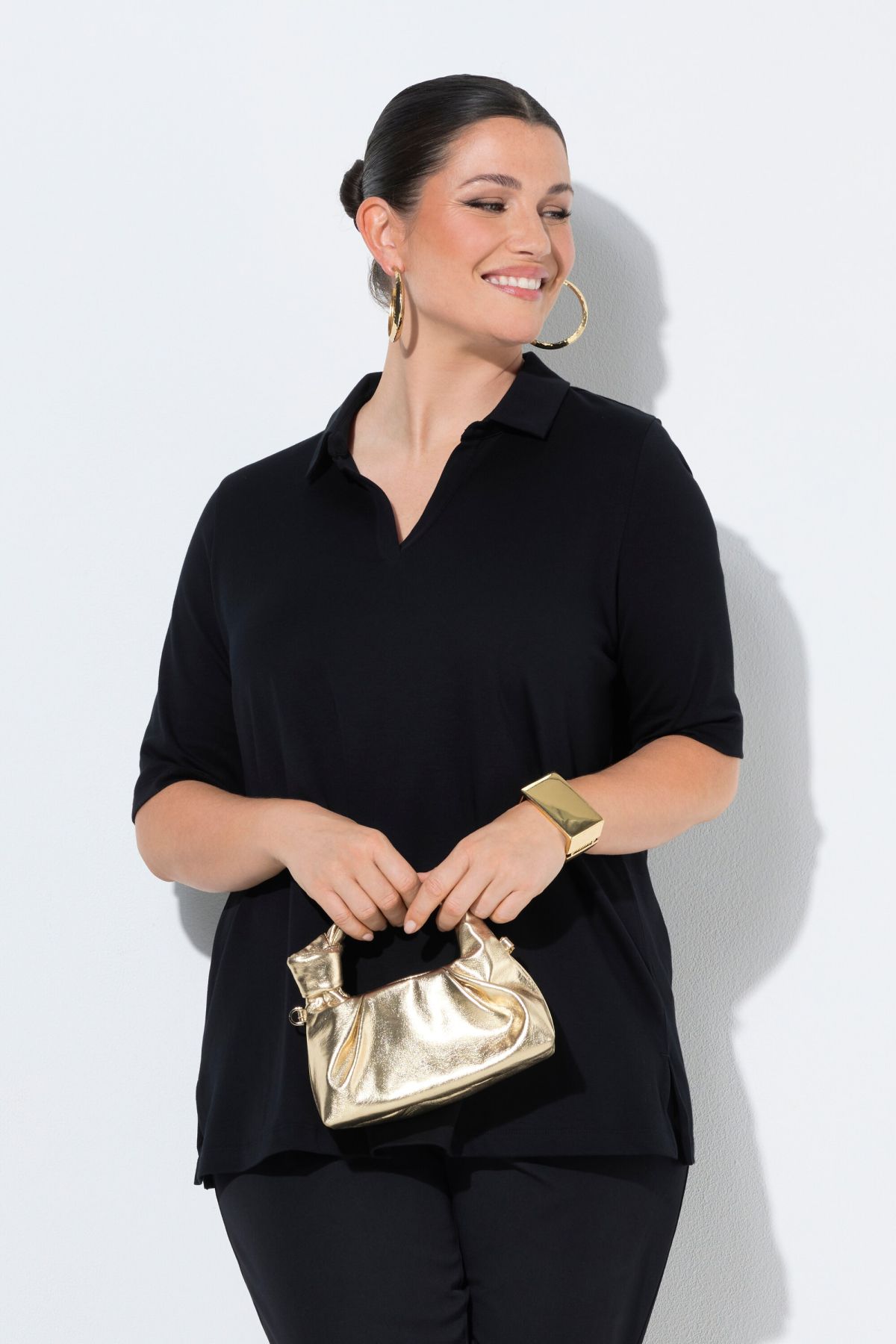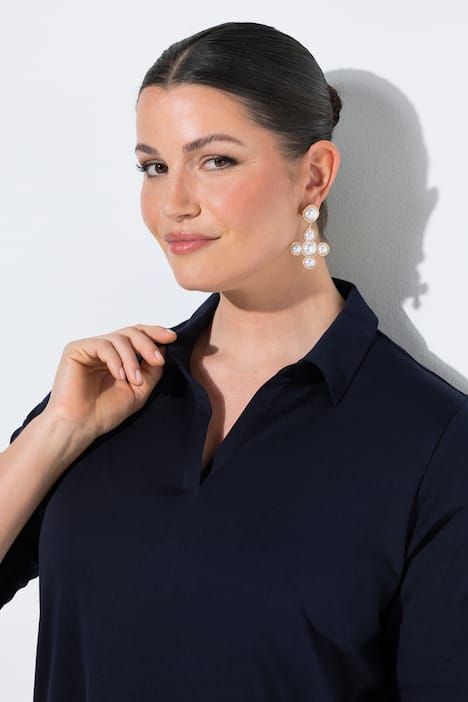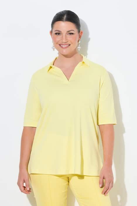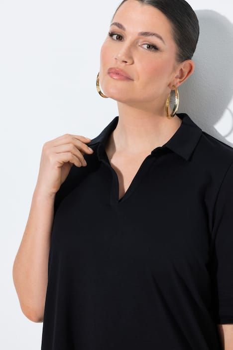 Col classique, fausse patte de boutonnage, Coton doux de haute qualité, Coupe évasée, base ample et confortable, Fentes sur les côtés pour une plus grande liberté de mouvement, Manches courtes au coude, Long. selon taille env. 70-78 cm.