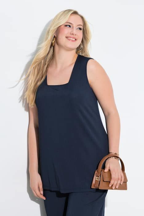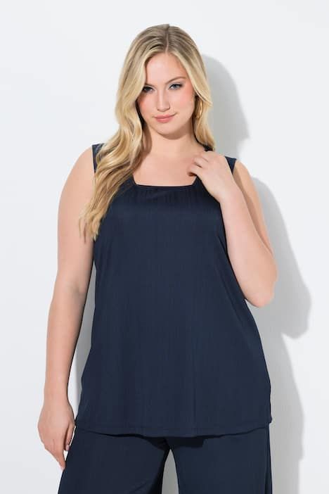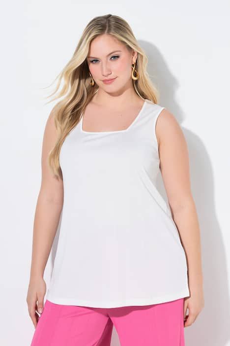 Jersey bord-côte agréablement élastique, Décolleté carré, Coupe évasée, base ample et confortable, Larges bretelles, Idéal également comme maillot de corps, Long. selon taille env. 72-76 cm.