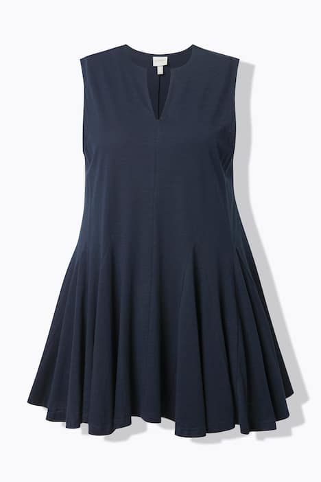 Ourlet évasé avec plis godet, Sans manches, Coupe A-ligne confortable, Sans manches, Coton biologique durable, Long. selon taille env. 82-86 cm.
