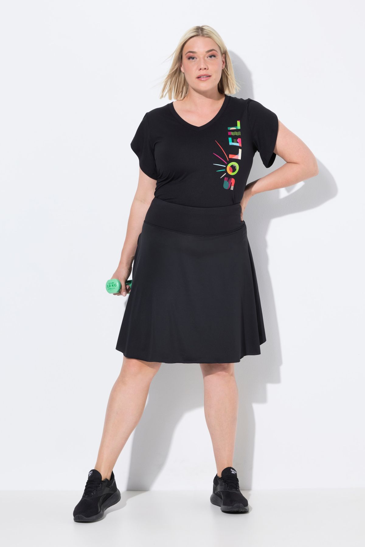 Jupe courte, style sportif, Bel effet portefeuille, Legging court intégré pour une liberté de mouvement maximale, Modèle à taille haute, élastique et confortable, Détail pratique : 2 poches spéciales smartphone, Entrej. env. 24 cm.
