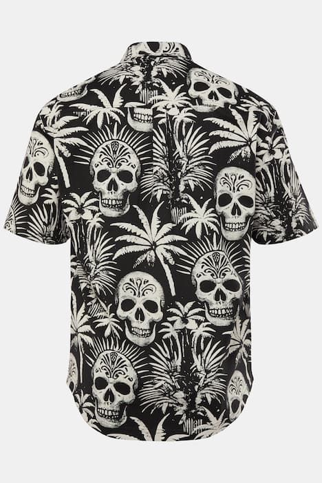 Chemise en jersey JP 1880, manches courtes et col à pointes boutonnées, motif tête de mort, coupe Modern Fit - jusqu'au 8 XL