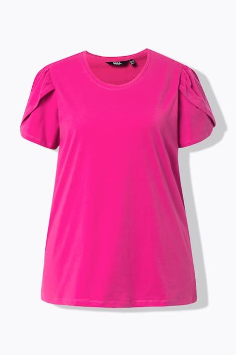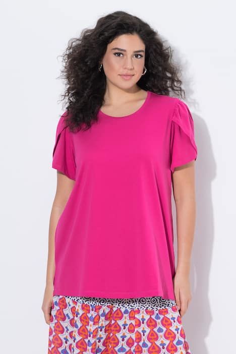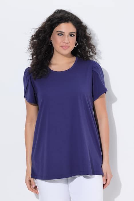 Manches courtes et amples avec drapé, effet de superposition tendance, Col rond, Coupe évasée confortable, Jersey doux et confortable, Pur coton, Long. selon taille env. 72-76 cm.