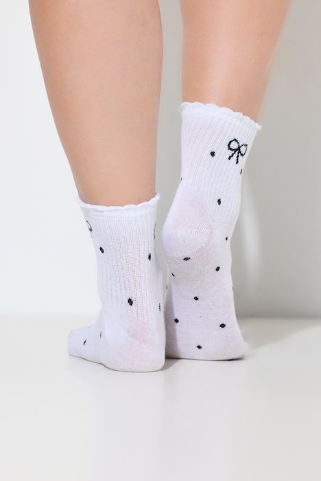 Élégant motif à petits pois, Charmant petit nœud brodé sur le haut de la tige, Tige courte, se terminant par une bordure fantaisie, Matière agréablement douce et élastique, Teneur élevée en coton