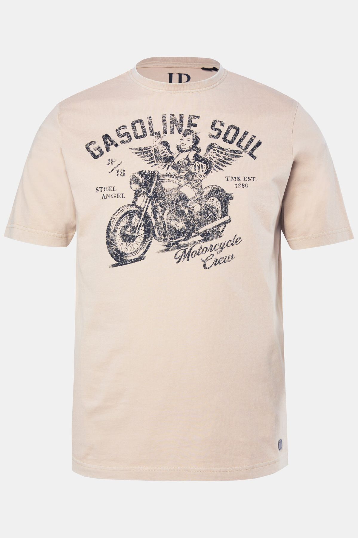 Coupe spéciale jusqu'au 8 XL, Jersey doux et confortable, Imprimé Gasoline Soul sur la poitrine, Style vintage - délavage acid washed, Manches courtes, Long. selon taille env. 74-86 cm.