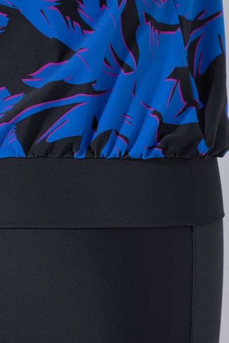 Haut plus long, motif palmiers colorés, Bonnets souples, Bande de soutien sous la poitrine, Base élastique et bretelles ajustables, Short assorti