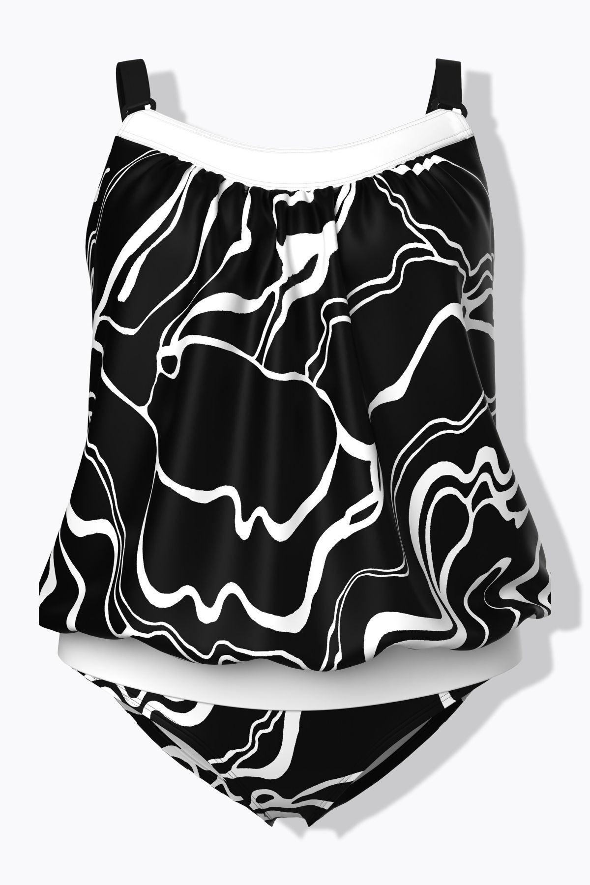 Tankini avec bonnets souples, bretelles ajustables et motif courbes