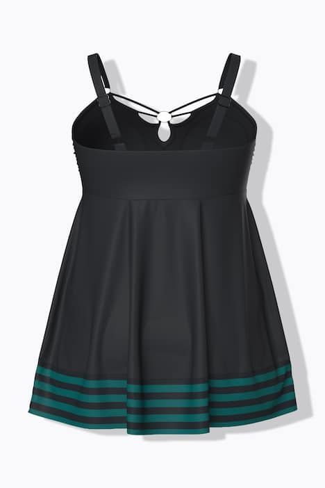 Motif Elephant queen sur le côté, large bordure rayée à la base, Maillot de bain intégré, Bonnets souples avec armatures, bande de soutien sous la poitrine, Doublure en Powermesh, Article fabriqué avec du polyester recyclé, plus respectueux de l'environne