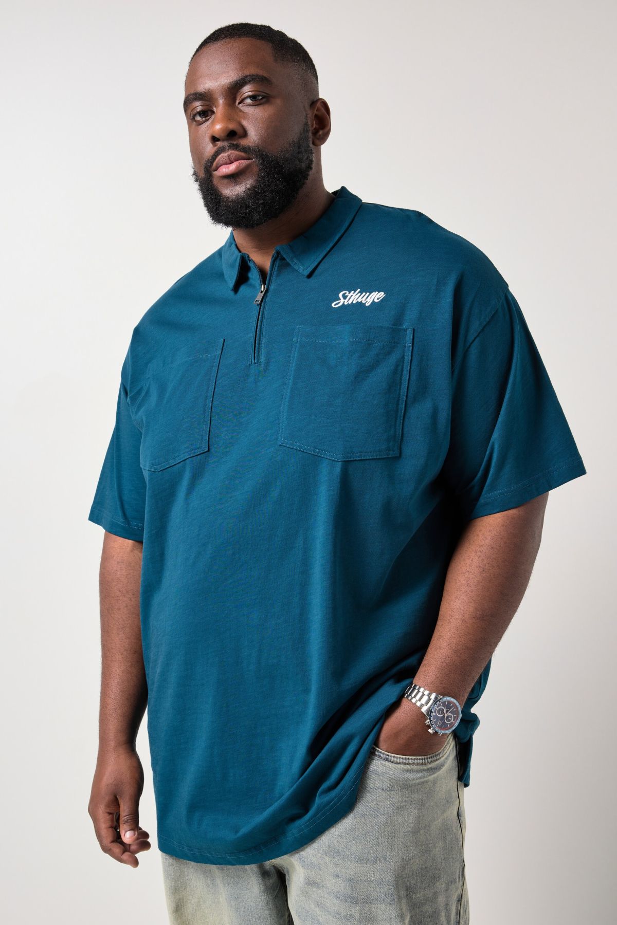 Taille L - 8 XL, Coupe confortable, Col polo avec fermeture zippée, Pas de boutons fastidieux, Poche poitrine, Long. selon taille env. 76-88 cm.