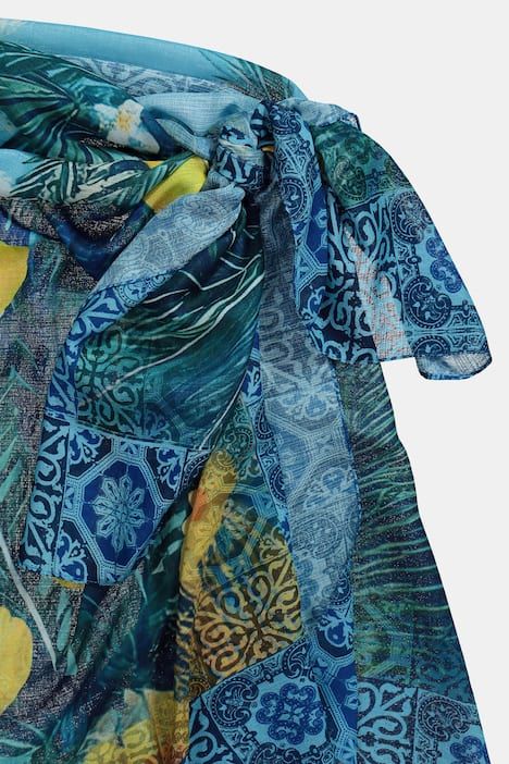 Motif paysage de vacances ensoleillé, bordures aux couleurs assorties, Très pratique pour la plage, à porter noué à la taille (jupe) ou sur la nuque (robe), Modèle agréablement léger, Grand modèle, pouvant se combiner de multiples manières, Un accessoire