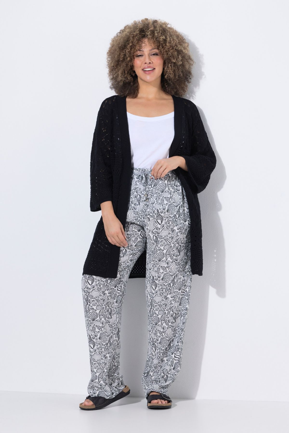 Imprimé tendance, Modèle Rose, jambe droite et large, Taille élastique confortable avec cordon de serrage, Deux poches sur les côtés, Crêpe de viscose au tombé fluide, Entrej. env. 82 cm.