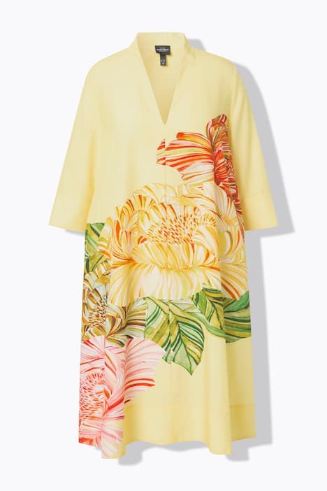 Motif grandes fleurs, Col calice avec décolleté en V, Coupe évasée confortable, Poches latérales réservées dans la couture, Lyocell naturellement doux et confortable, Long. env. 110-114 cm.