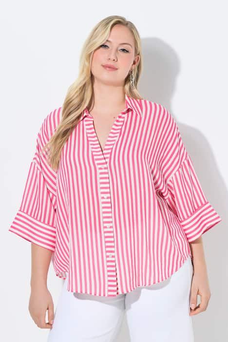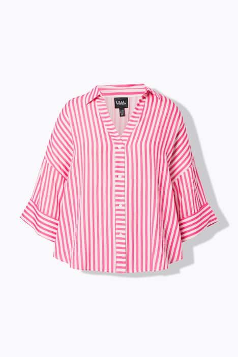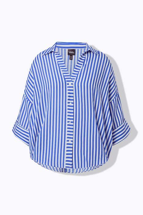 Chemisier oversize à rayures, encolure en V et manches 3/4