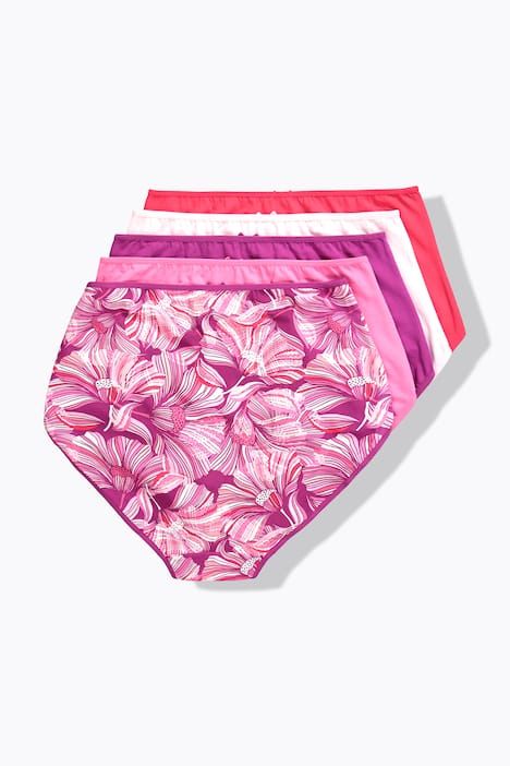Lot de 5 culottes à prix attractif, Modèle couvrant les fesses, Tour de cuisse moyennement échancré, Hauteur sur le côté : env. 18 cm (taille 44/46), Gousset en pur coton