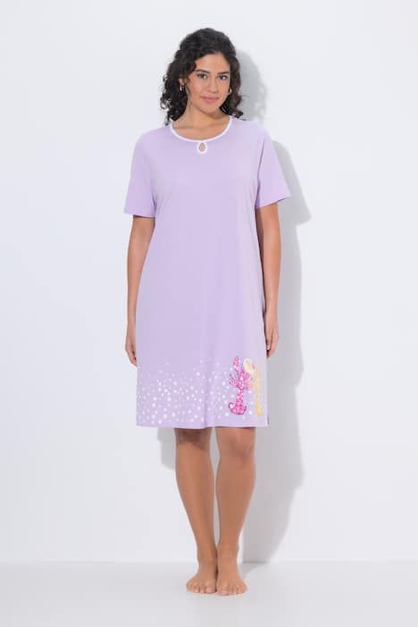1x bordure homards, 1x motif homards en all-over (intégral), Décolleté rond avec « trou de serrure », Fentes sur les côtés pour encore davantage de confort, Manches courtes, Coton respirant, idéal pour la nuit, Long. env. 100-105 cm.