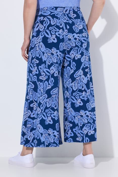Jersey flammé dans un imprimé graphique, Jambe droite extra-large, Taille élastique agréablement large, Deux poches sur les côtés, Viscose enrichie en élasthanne, tombé fluide, Entrej. env. 62 cm.