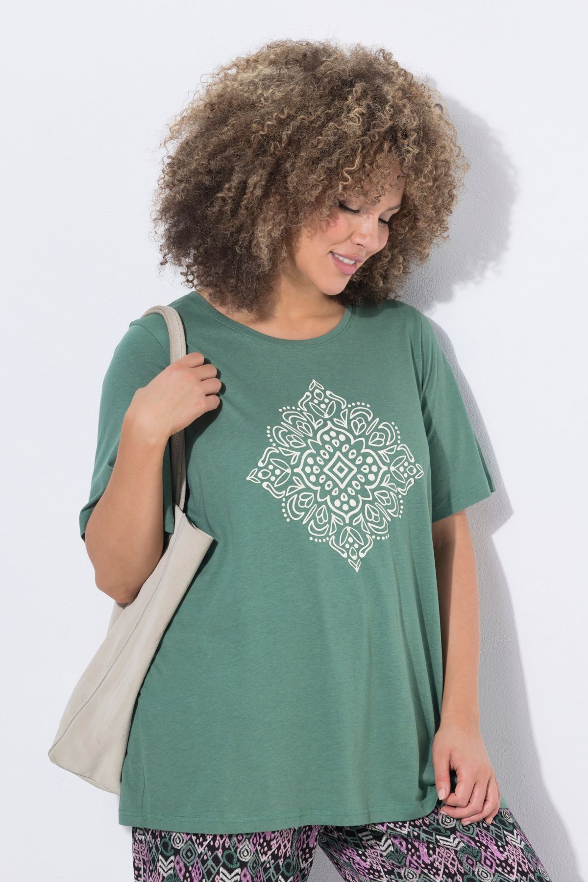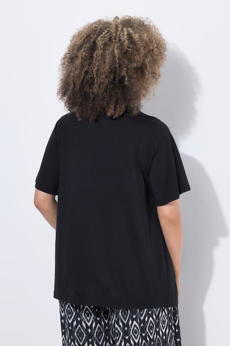 Imprimé fantaisie sur le buste, Décolleté rond, Coupe évasée confortable, Manches cloche, courtes et amples, Mélange modal-coton d'une très grande douceur, Long. selon taille env. 72-76 cm.