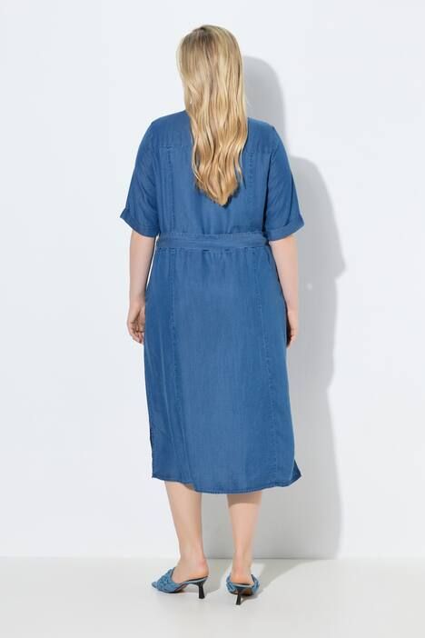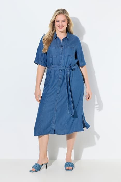 Poches poitrine, Modèle classique avec col chemise et patte de boutonnage, Coupe évasée confortable, Poches latérales réservées dans la couture, Manches courtes plus longues que la normales, avec manchettes, Long. env. 120 cm.