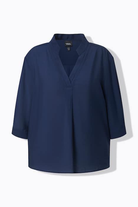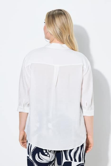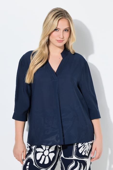 Blouse-tunique oversize, passepoils, col montant et manches 3/4