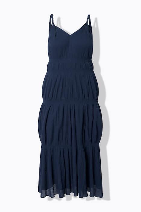 Bretelles torsadées tendance, Décolleté en V, Coupe évasée longue, avec coutures horizontales élastiques, Modèle sans manches, Pur coton, Longueur env. 137 cm