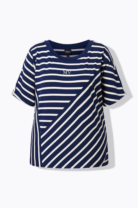 Jeu de rayures tendance, logo MV scintillant, Décolleté rond, Modèle oversize décontracté, Manches courtes descendant un peu plus bas que la normale, Jersey de viscose doux et confortable, enrichi en élasthanne, Long. selon taille env. 64-72 cm.