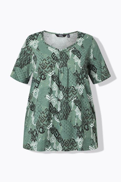 Imprimé tendance, Décolleté en forme de cœur et plis fantaisie, Coupe évasée confortable, Manches courtes, Pur coton, Long. selon taille env. 72-76 cm.