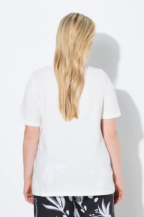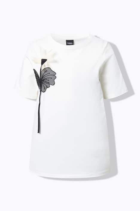 Imprimé tendance avec fleur en relief, Décolleté rond, Coupe Classic Fit, Manches courtes, Pur coton, Long. selon taille env. 72-76 cm.