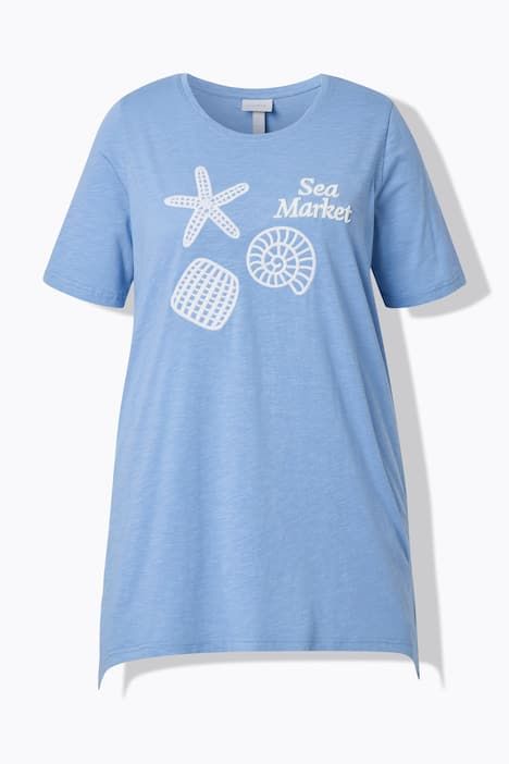 Motif Sea Market avec broderies fantaisie, Décolleté rond, Coupe Classic Fit décontractée, se terminant en pointe de chaque côté, Manches courtes, Coton bio durable, Long. selon taille env. 76-80 cm.