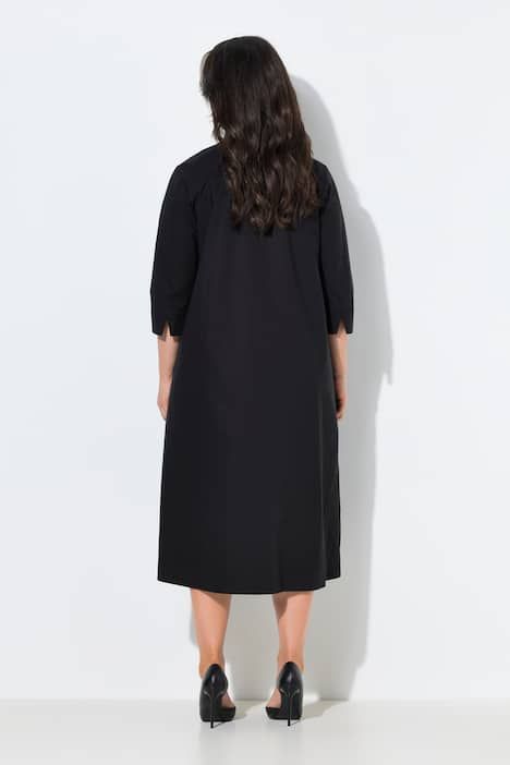 Tissu Papertouch haut de gamme, Col calice tendance, avec décolleté en V et pli fantaisie, Coupe évasée confortable, poches latérales réservées dans la couture, Manches 3/4 avec plis fantaisie, Pur coton, Long. env. 120 cm.