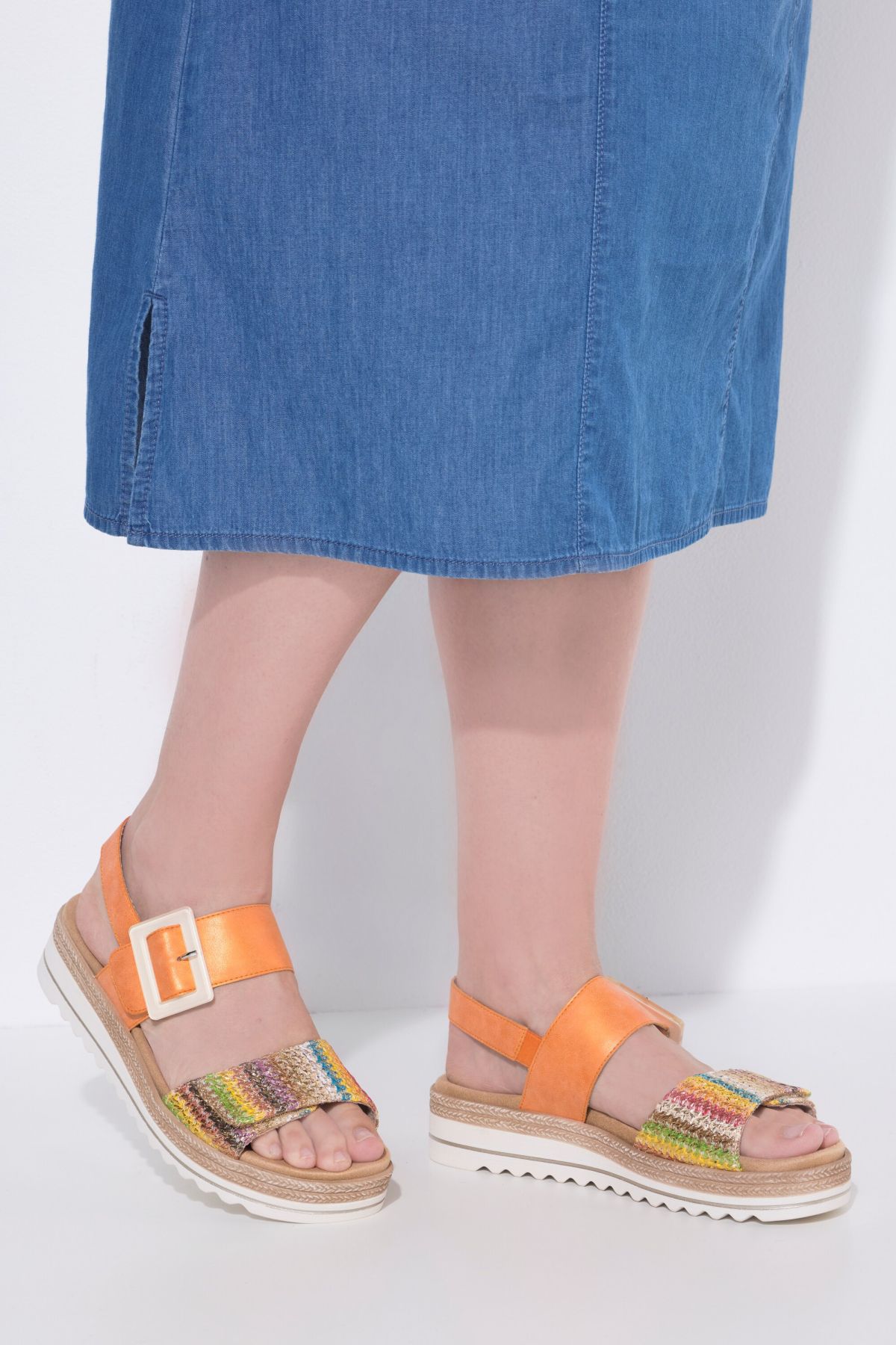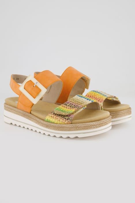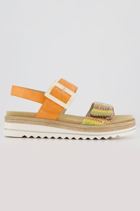 Mélange tendance de matériaux, boucle fantaisie, Bride ajustable sur le côté, avec fermeture à scratch, Semelle de propreté ergonomique et amovible, Semelle en caoutchouc absorbant les chocs, avec talon compensé de 4 cm, Largeur F 1/2