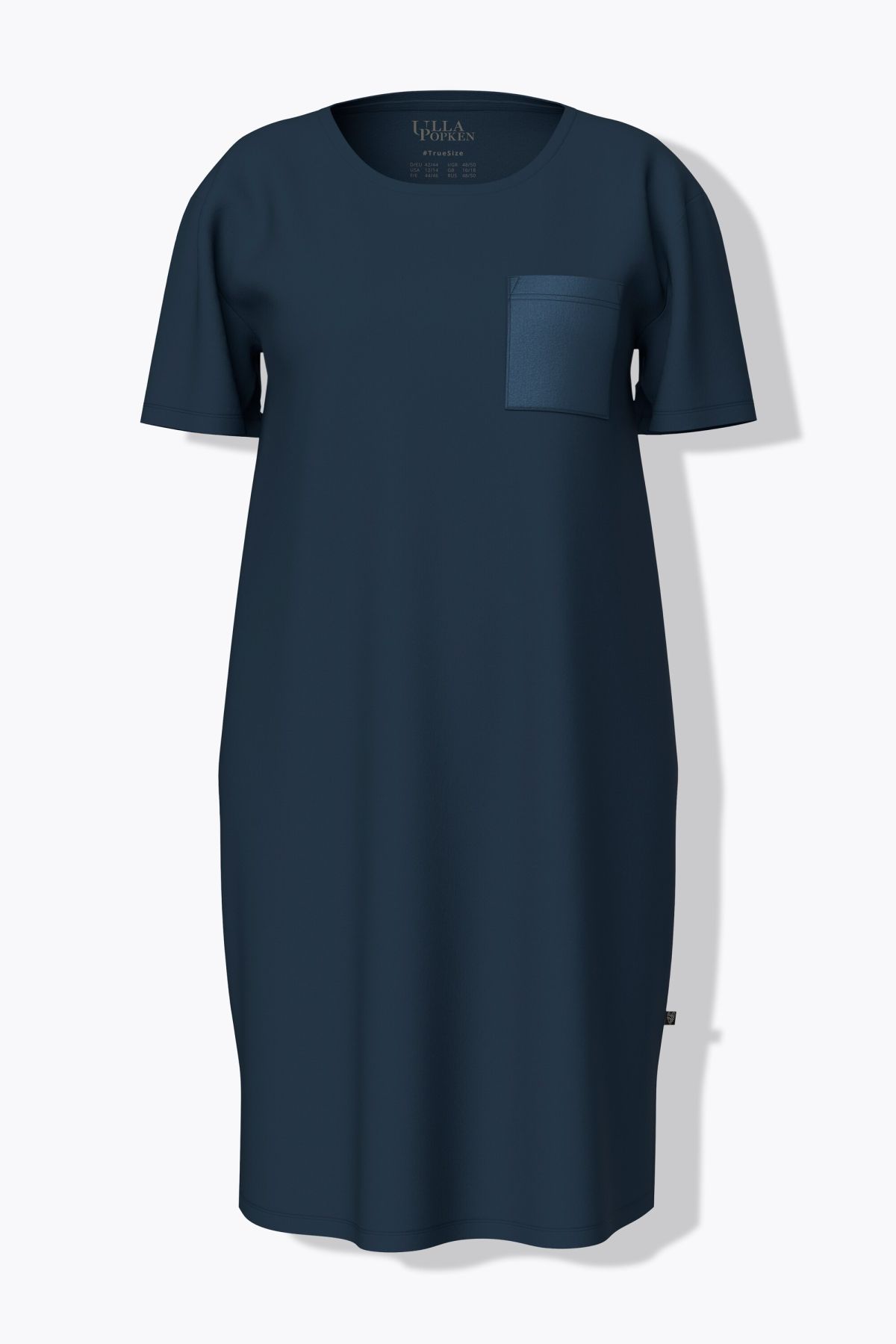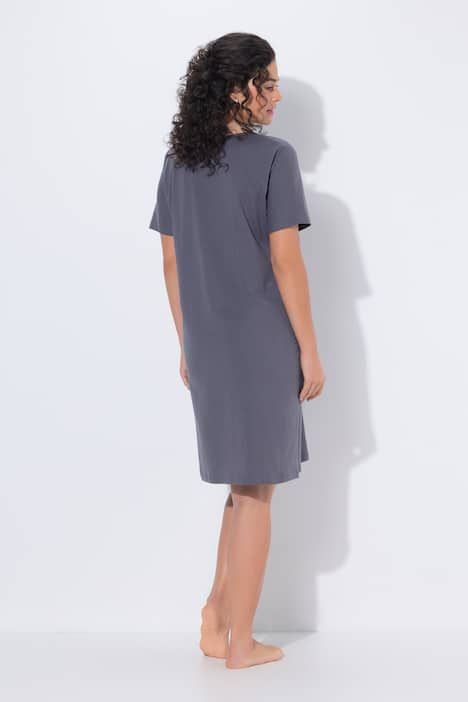 Poche poitrine en satin brillant, Décolleté rond et large, Fentes sur les côtés pour encore davantage de confort, Manches courtes, Pur coton, Long. selon taille env. 100-105 cm.