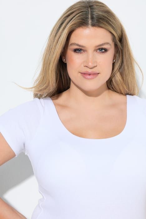 T-shirt avec soutien-gorge intégré, décolleté en V et manches courtes