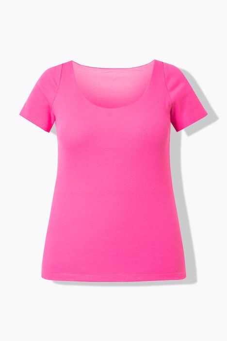 T-shirt avec passepoils, décolleté en V et manches courtes, coupe évasée