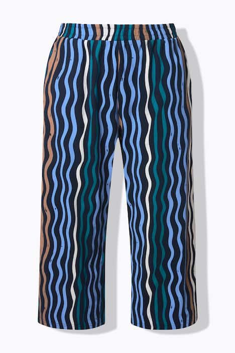 Motif vagues haut en couleurs, Jambe évasée, Taille élastique confortable, Poches fendues sur les côtés, Jersey doux et confortable, en coton bio durable, Entrej. env. 60 cm.
