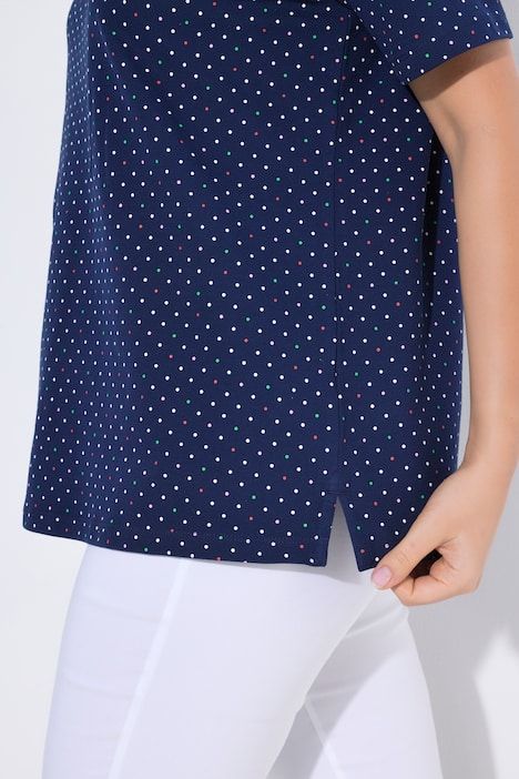 Piqué de coton Pima doux et confortable, motif à pois, Col polo sportif, Patte de boutonnage un peu plus longue que la normale, Fentes sur les côtés pour encore davantage de confort, Coton Pima de grande qualité, avec teneur en élasthanne, Long. selon tai