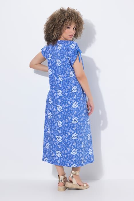 Jersey doux et confortable, motif parasols estival, Décolleté rond, Épaules basses, petits cordons à froncer au bas des manches, Modèle sans manches, coupe évasée avec base agréablement confortable, Coton naturel enrichi en élasthanne, Long. selon taille