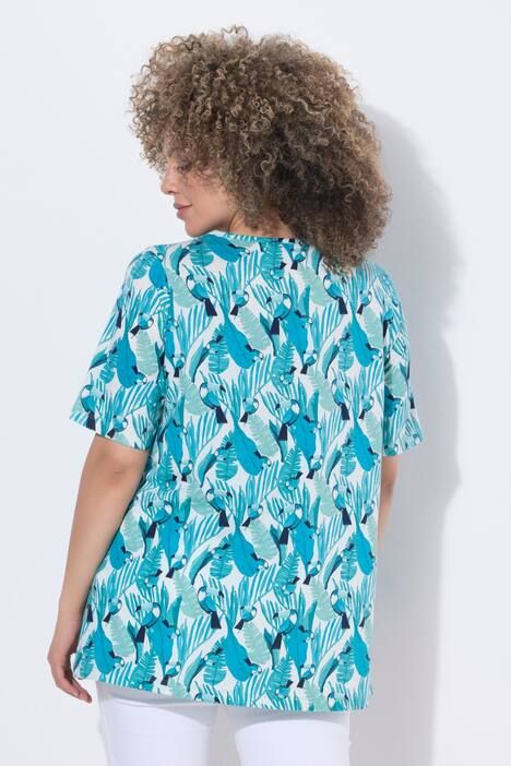 Motif toucans exotique, Décolleté en V se terminant par des plis fantaisie, Coupe évasée confortable, Manches courtes, Coton naturel, Long. selon taille env. 72-76 cm.