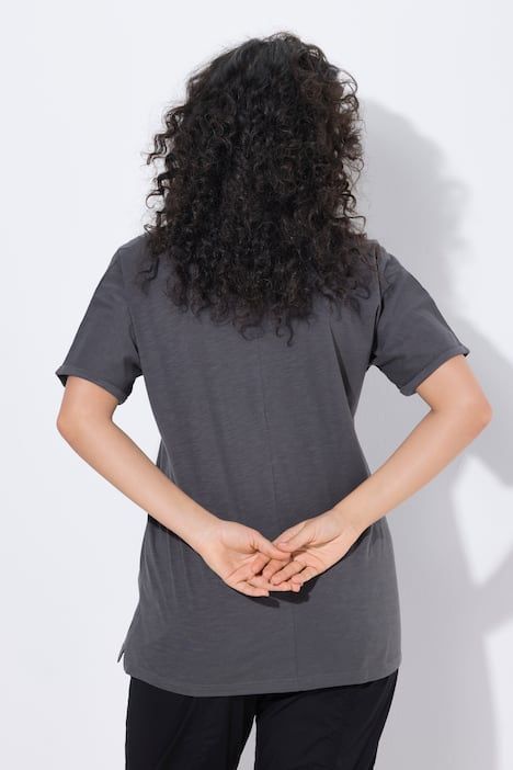 Motif mandala animal métallique - différent pour chaque couleur, Décolleté en V arrondi, Coupe oversize décontractée, avec fente sur les côtés, Manches courtes avec revers cousus, Pur coton, Long. env. 72-76 cm.