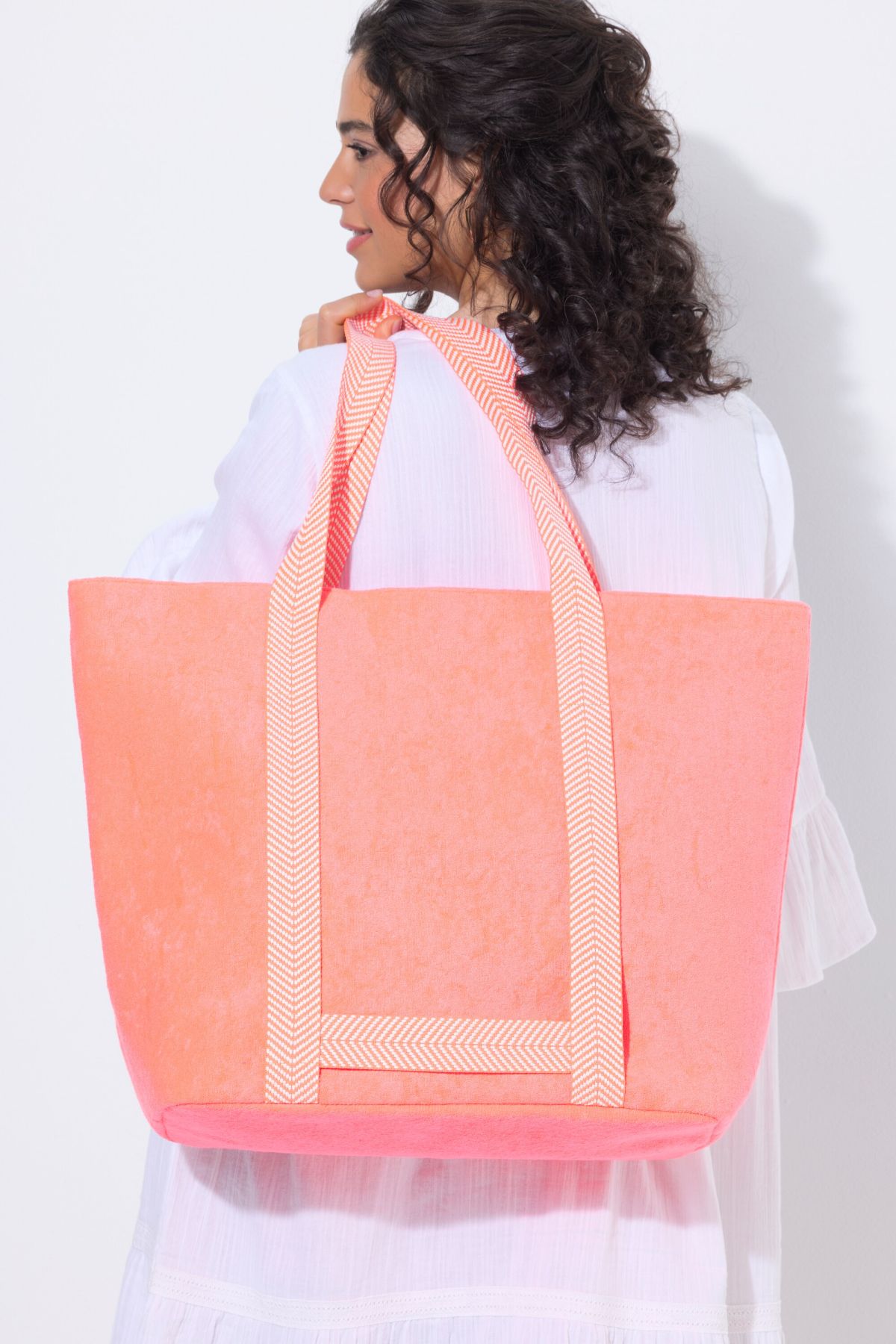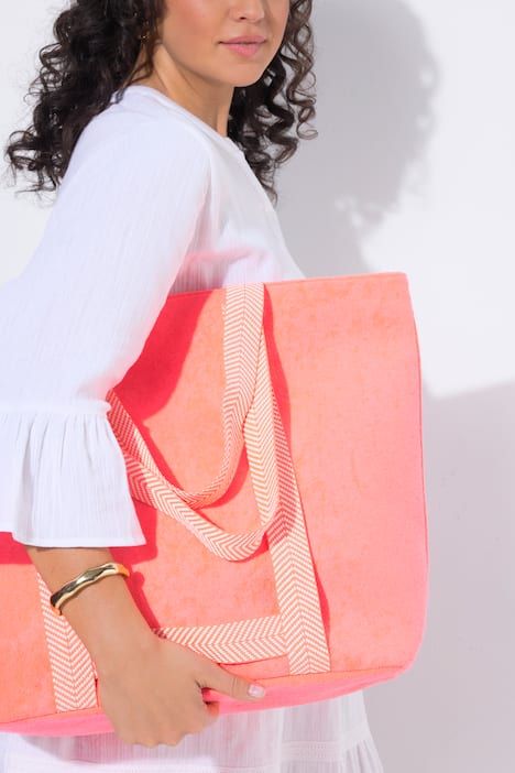 Rose fluo - véritable accroche-regards !, Anses tissée fantaisie, Grand format très pratique, Compartiment principal avec fermeture zippée, Doublure intérieure avec compartiments de rangement, 56 x 41 x 20 cm + anses